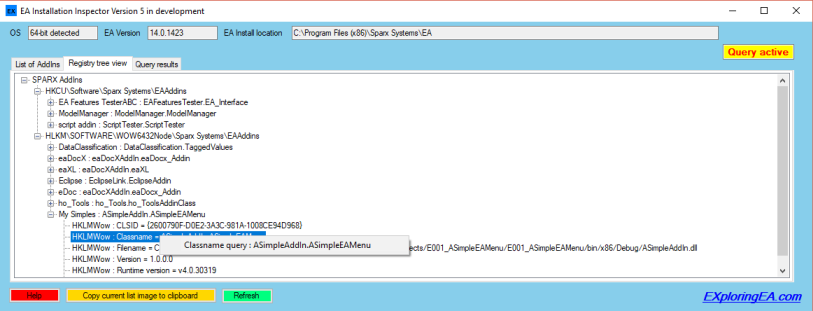 We are adding a new tab with a tree view presentation of Sparx related key entries using contents extracted from the registry.
