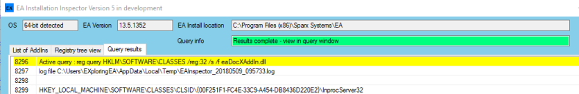 As an example the current test versions has only a single item implemented: you select a DLL and the registry queries any instances of the filename in HKCU. This is to look for multiple instance that may be registered. Thinking of other things we do and of course welcome feedback on what others find useful. Note - as the query can take time this is done in the background so no instant results but will display in query window when done; more to do on this when the requirements are finalised