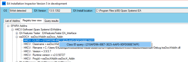 We are adding a new tab with a tree view presentation of Sparx related key entries using contents extracted from the registry.